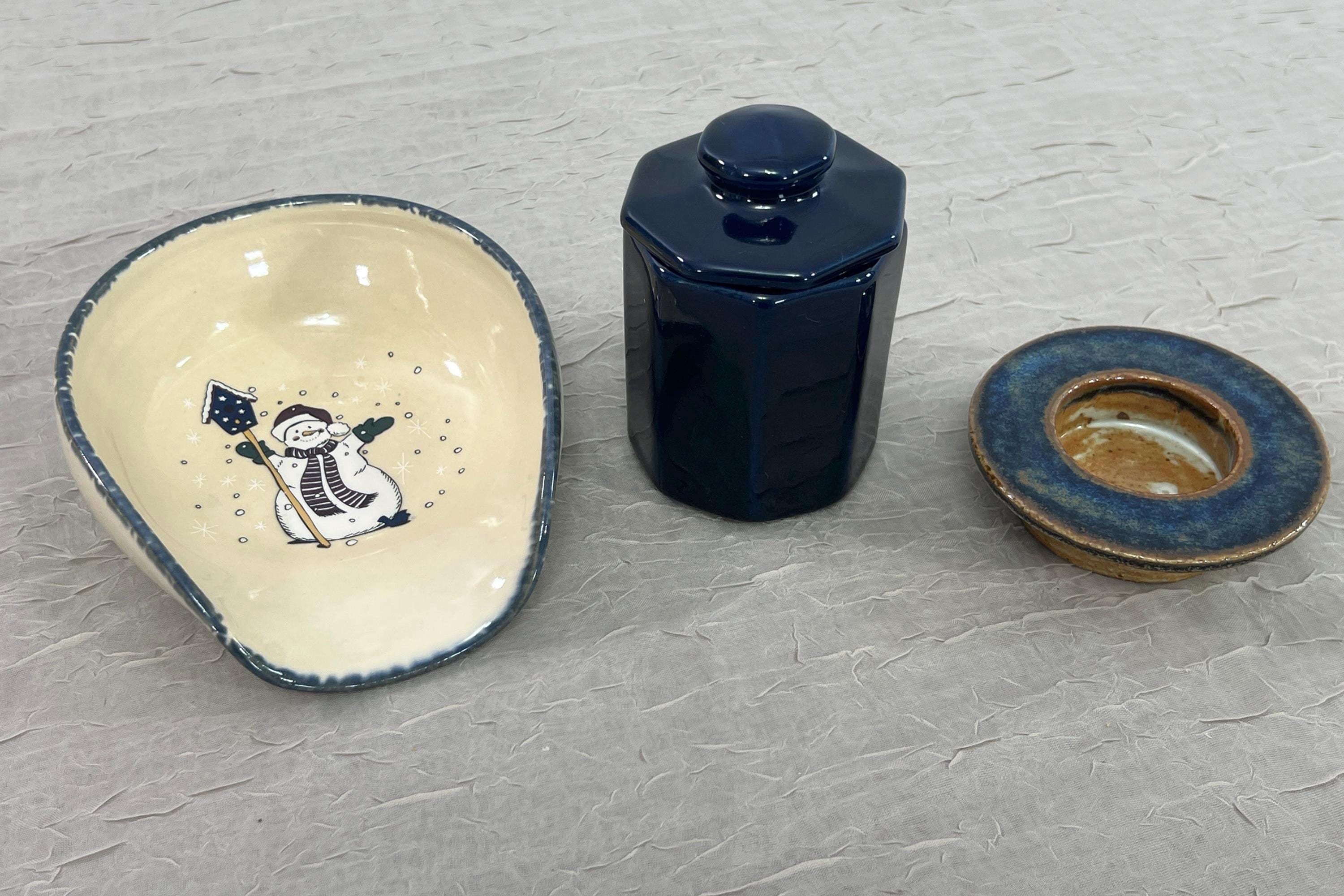 Vintage Pottery | Choose From: Home & Garden Party Snowman Spoon Rest, McCoy Cobalt Jar, Or Signed F Soleil Le Bonhomme's Pottery Votive Cup