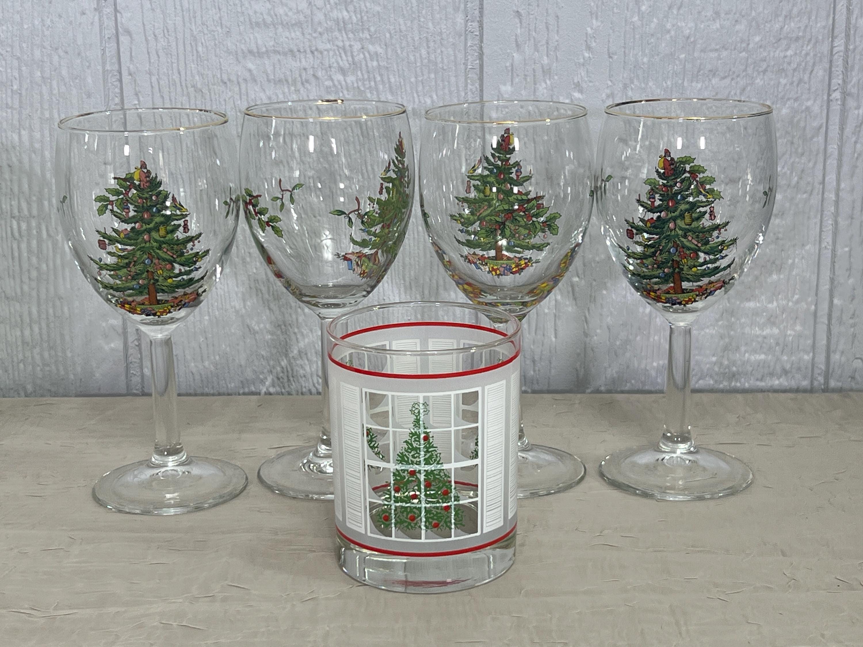 Vintage Holiday Barware | Choose From: Waechtersbach Lowball-Christmas Tree in Window Or Spode Christmas Tree Wine Glasses Boxed(Set of 4)