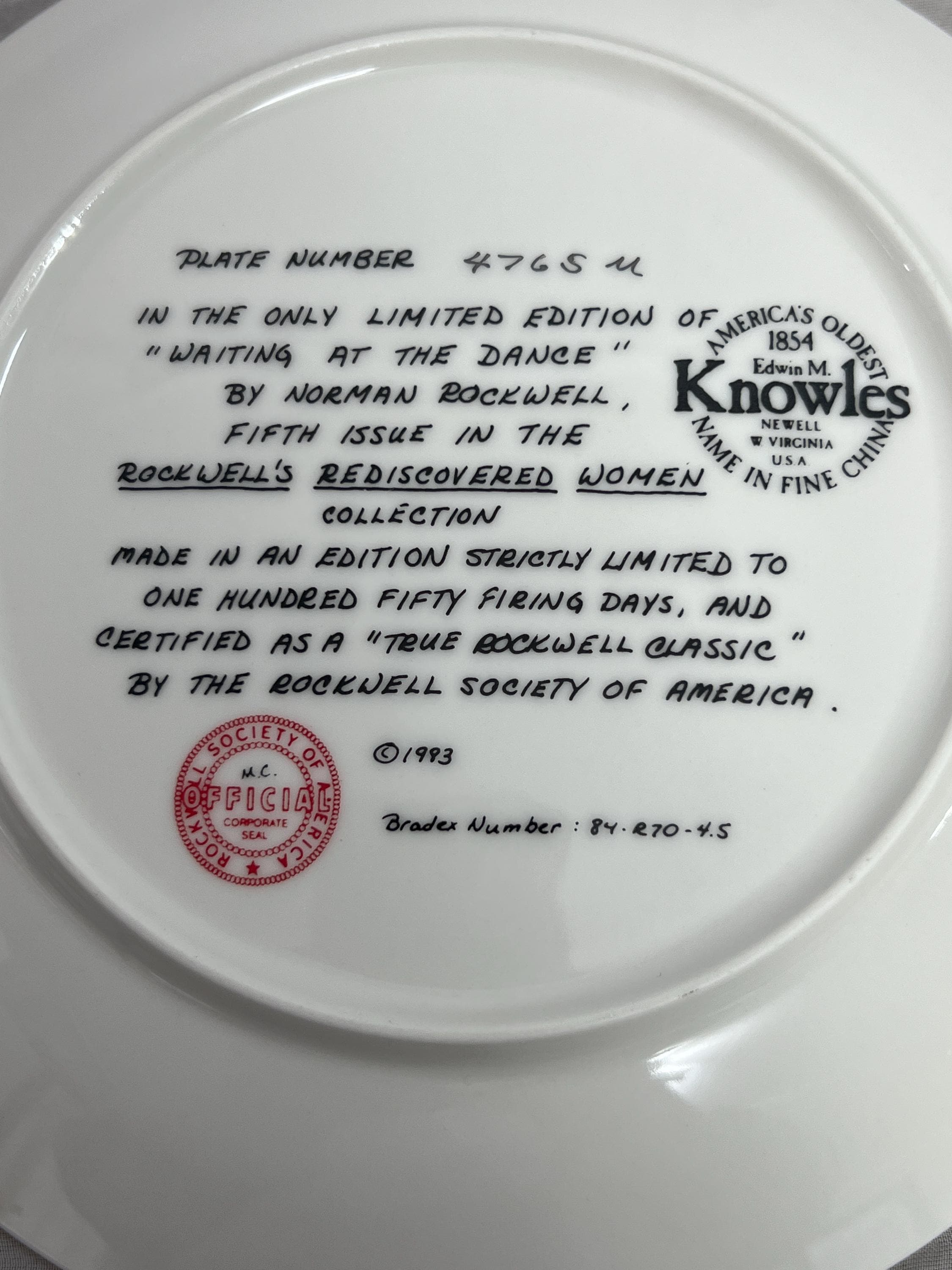 Norman Rockwell Collector Plate - Rediscovered Women Series