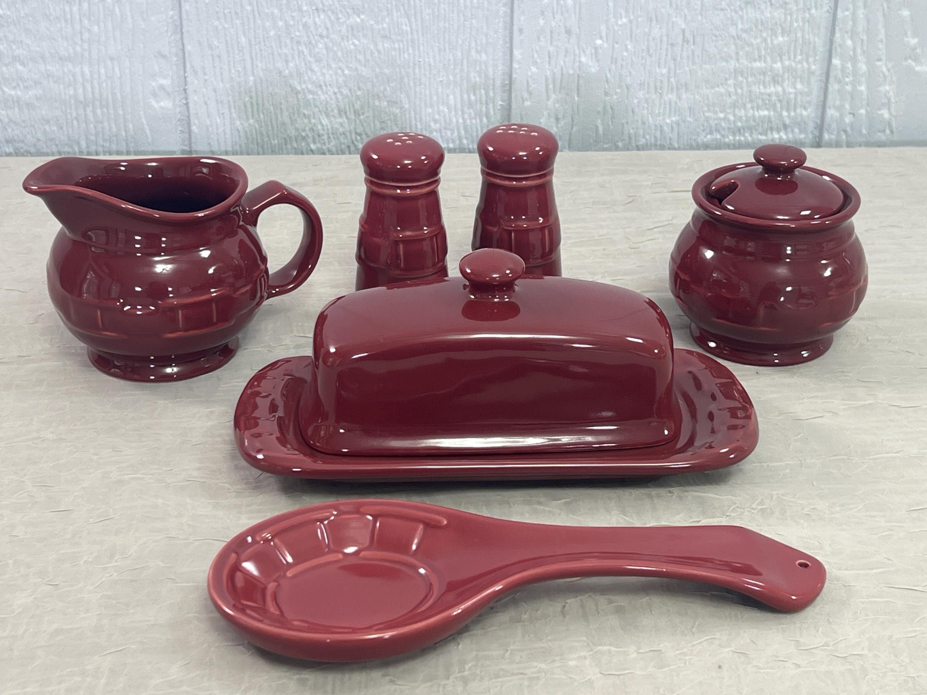 Longaberger Paprika Woven Traditions Pottery | Choose From: Round Salt/Pepper, 1/4 lb Covered Butter, Creamer, Lidded Sugar, Or Spoon Rest