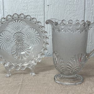 Three-In-One is an in-mold design with two rows of diamond-in-diamond pattern that circles the top and bottom of the scalloped toothpick holder separated with wide smooth vertical panels in between. The underside collar base has a star burst design.